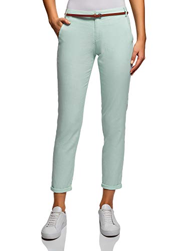 Oodji Ultra Donna Pantaloni Affusolati con Cinturino, Verde, DE 42 / EU 44 / XL