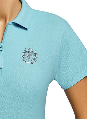 Oodji Ultra Donna Polo con Ricamo Chiusura a Zip, Blu, XXS