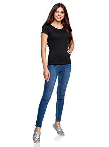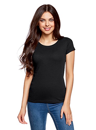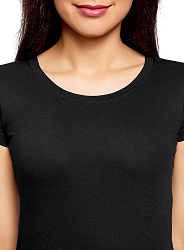Oodji Ultra Donna T-Shirt Basic in Cotone, Nero, XL