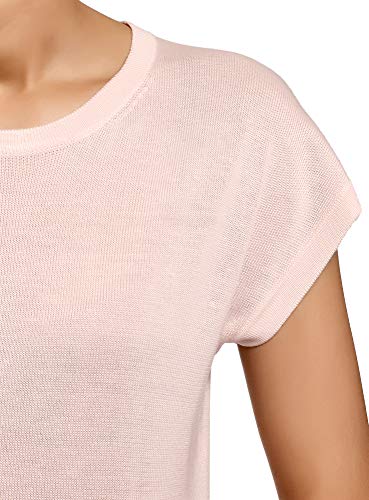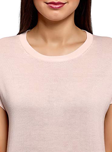 Oodji Ultra Donna T-Shirt Larga Lavorata a Maglia con Scollo Rotondo, Rosa, L