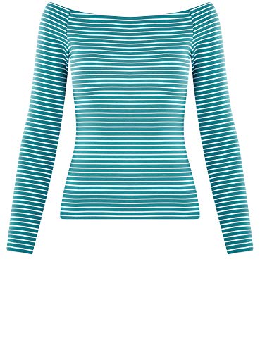 Oodji Ultra Donna T-Shirt con Maniche Lunghe e Scollo a Barca, Turchese, S