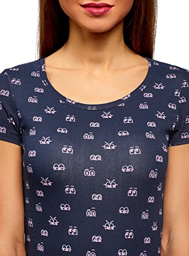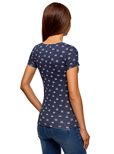 Oodji Ultra Donna T-Shirt Slim Fit Stampata, Blu, XS
