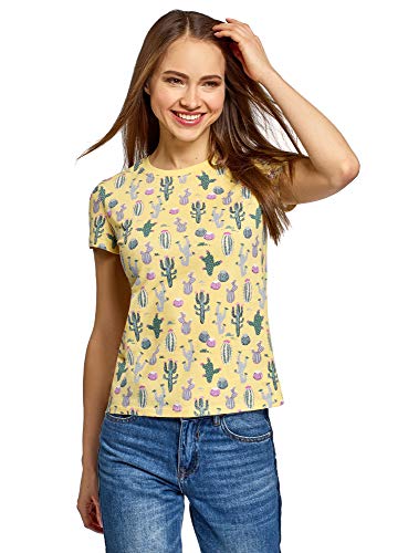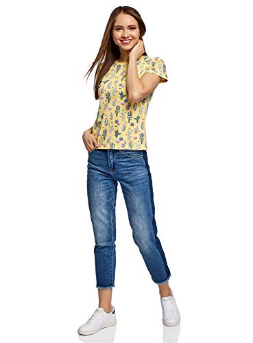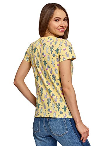 Oodji Ultra Donna T-Shirt Stampata con Scollo Rotondo, Giallo, XL