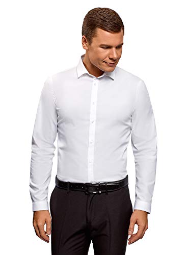 Oodji Ultra Uomo Camicia Basic Slim Fit, Bianco, 42