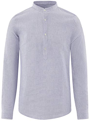 Oodji Ultra Uomo Camicia in Lino con Colletto alla Coreana, Blu, 50-52