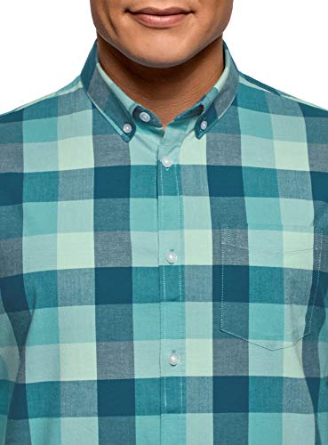 Oodji Ultra Uomo Camicia a Quadri in Cotone, Verde, 48