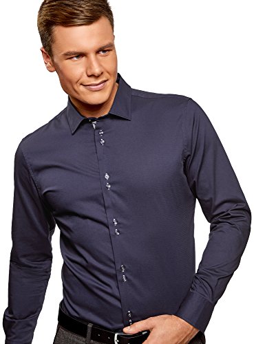Oodji Ultra Uomo Camicia Slim Fit con Maniche Lunghe, Blu, 39
