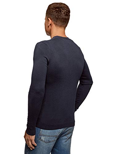 Oodji Ultra Uomo Cardigan Abbottonato in Cotone, Blu, IT 54 / EU 56 / XL