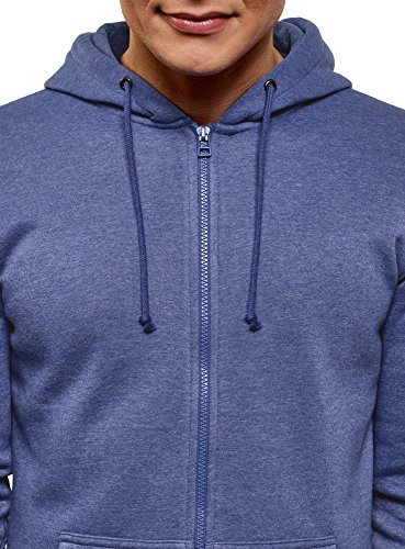 Oodji Ultra Uomo Felpa Basic con Cappuccio, Blu, IT 48 / EU 50 / M