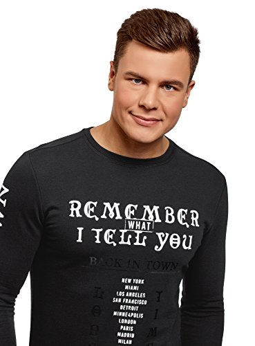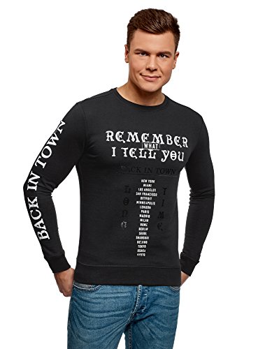 Oodji Ultra Uomo Felpa in Cotone con Scritte, Nero, IT 48 / EU 50 / M