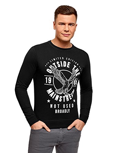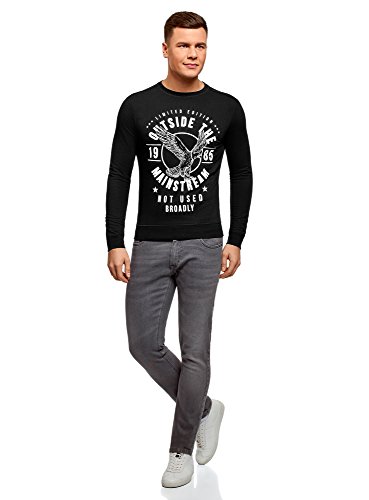 Oodji Ultra Uomo Felpa in Cotone con Stampa, Nero, IT 48 / EU 50 / M