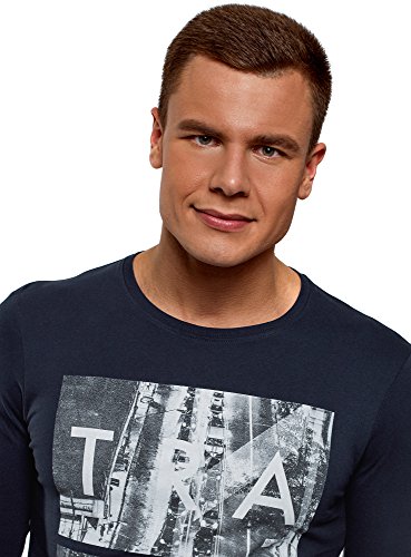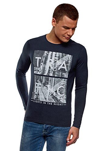 Oodji Ultra Uomo Felpa Stampata in Cotone, Blu, IT 50-52 / EU 52-54 / L