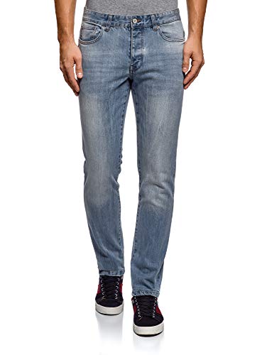 Oodji Ultra Uomo Jeans Slim Fit Basic, Blu, 28 DE (28W / 34L)