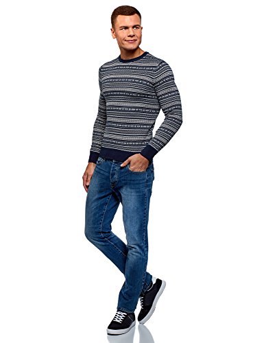 Oodji Ultra Uomo Maglione Lavorato a Maglia in Jacquard, Blu, IT 50-52 / EU 52-54 / L