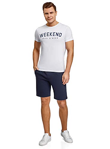 Oodji Ultra Uomo Pantaloncini in Cotone con Lacci, Blu, 46