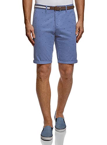 Oodji Ultra Uomo Pantaloncini Stampati con Cintura, Blu, 42W