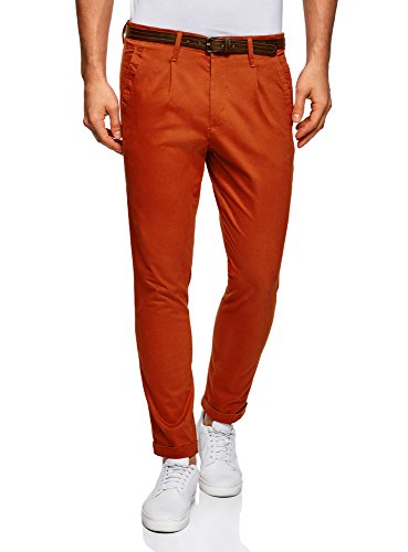 Oodji Ultra Uomo Pantaloni Chino con Cintura, Rosso, 48