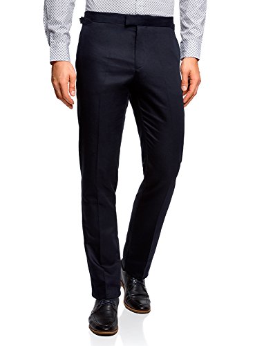 Oodji Ultra Uomo Pantaloni in Cotone e Lino con Cintura Regolabile, Blu, 46