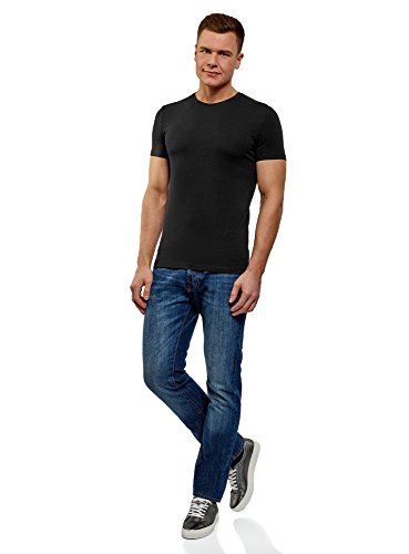Oodji Ultra Uomo T-Shirt Basic in Cotone con Orlo a Taglio Vivo, Nero, 54