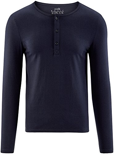 Oodji Ultra Uomo T-Shirt Henley con Maniche Lunghe, Blu, IT 48 / EU 50 / M