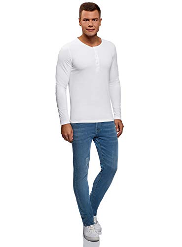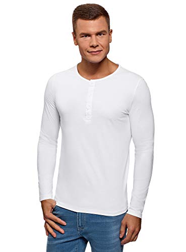 Oodji Ultra Uomo T-Shirt Henley con Maniche Lunghe, Bianco, IT 42 / EU 44 / XS