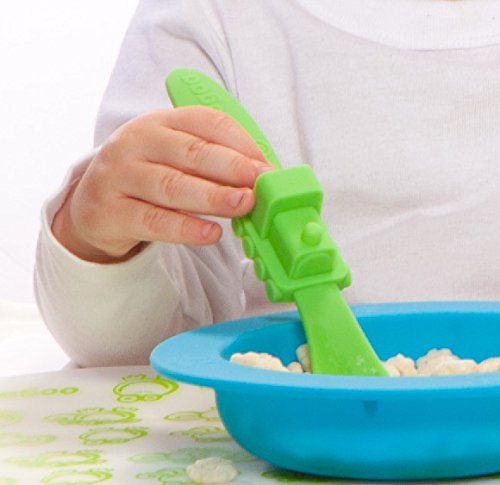 Oogaa S841 - Cucchiaio in silicone a forma di treno, colore: Verde
