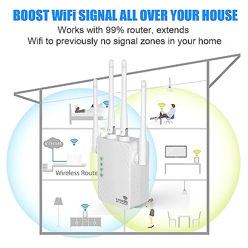 【5GHz&2.4GHz Dual Band】: Questo extender rilascia due canali di 2.4GHz (bassa velocità) e 5GHz (alta velocità), con velocità WiFi fino a 1200Mps. Si consiglia di scegliere prima 5GHz. Può accettare segnali WIFI di 6-10 metri, migliorare i segnali WiFi, espandere l'area di 80-100 metri quadrati e anche i piani adiacenti possono essere utilizzati.