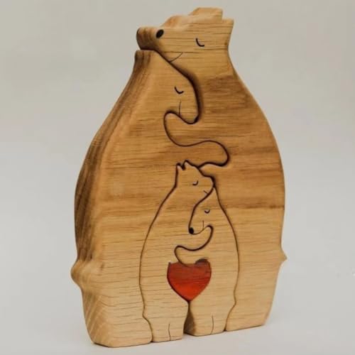 OOTDAY Orsi Puzzle familiari in Legno,Personalized Bear Family Wooden Art Puzzle,Puzzle Artistico in Legno Personalizzato con Famiglia di orsi,2-6 Family Members Bear Family Wooden Art Puzzle-C