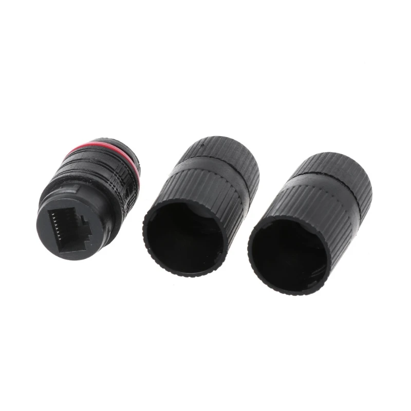 OOTDTY Waterproof RJ45 Connector Cable Network Double Head Adapter Coupler Extension Black 106x22mm