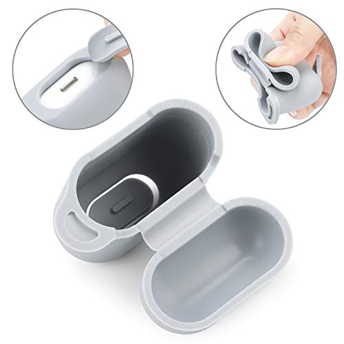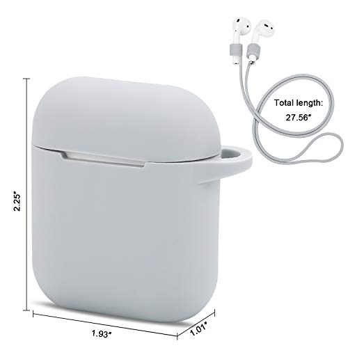 OOTSR Custodia protettiva e portachiavi con pompon carino compatibile per custodia Apple AirPods, custodia protettiva in silicone e cinturino anti-perso per Apple AirPods(Grigio)