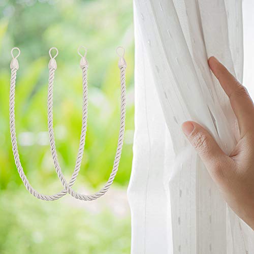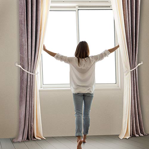 OOTSR Fermatenda Tende con Ganci Autoadesivi Trasparenti, Finestre Fermatende Corda Fibbia in Tieback per Tende per Ufficio Domestico Camera da Letto Decorazione Finestra Trattamento (Bianco)