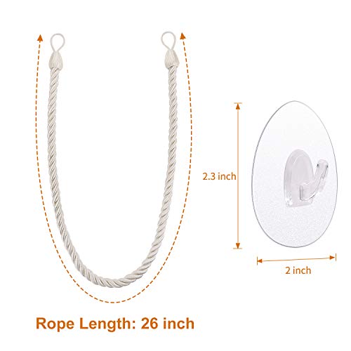 [2 pezzi cordino fermatende e ganci] - Il pacchetto include un paio di fermi per tende e ganci da parete autoadesivi da 2 pezzi (nessun danno alla parete)