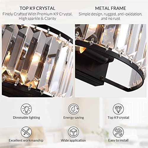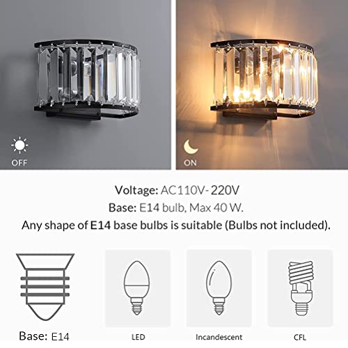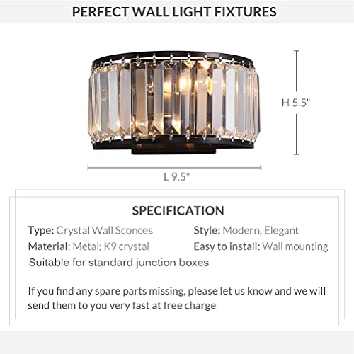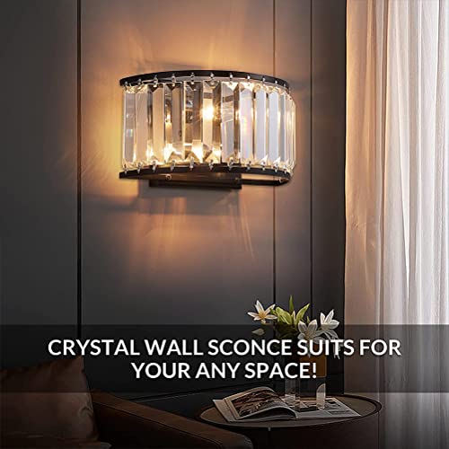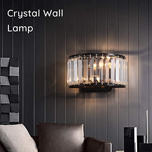 OOWOKS Applique da parete cristallo per interni Lampada Cristallo Moderno Lampada da parete a LED Semitonda Lampada Up Down Lampada da Comodino Dimmerabile 3 Colori Applique 2 Luci × E14,Nero