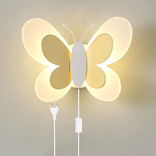 OOWOKS LED Lampada a Muro Bambini con Interruttore e Spina Applique da Parete La Stanza dei Bambini Luce Notturna a farfalla Lampada da Comodino Camera da Letto Lampada Applique 15W dimmerabile