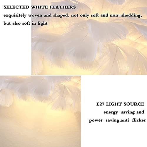 OOWOKS Lampada da parete moderna creativa con piume bianche E27 Applique interni Minimalista Camera letto Comodino Illuminazione parete per camera dei bambini Soggiorno Sala studio Lampada decorativa