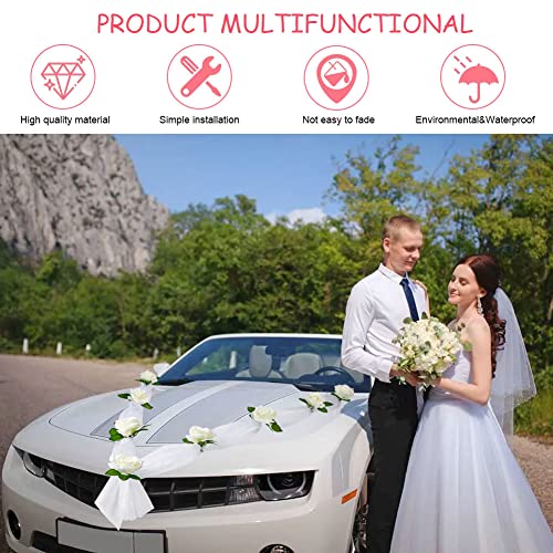 Materiale Premium: realizzato con fiori artificiali e garza di alta qualità, l'auto da matrimonio con nastro è di pregevole fattura, ti offre un'atmosfera romantica.