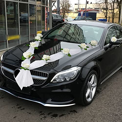 Opaltool Decorazioni per Macchina Matrimonio, Nastro per Auto Matrimonio Fiocchi Nastro di Raso per Matrimonio Auto, Nastro in Organza + Cuori Ornamentali, Decorazioni per Feste di Matrimonio