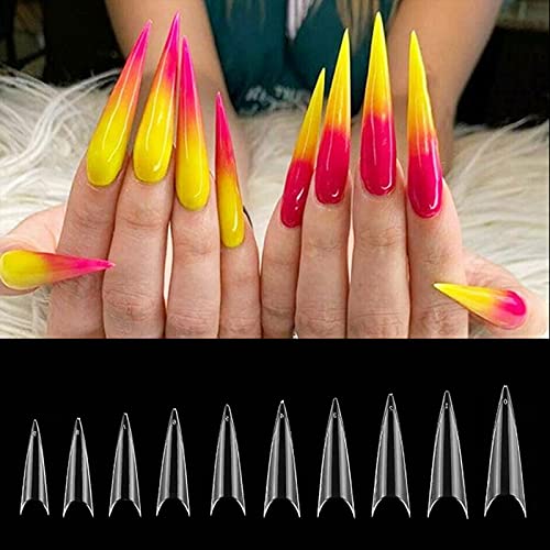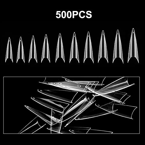 Opamoo Unghie Artificiali Lunghe della Ballerina, 500 Pezzi Acrilico Unghie Finte, Naturale unghie artificiali False Nails per saloni, Naturale Unghie Tips Set in 10 taglie con scatola (Trasparente)