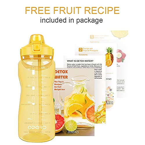 Opard Borraccia da 2 l, senza BPA, con cannuccia, chiusura a 1 click, impermeabile, marcatura oraria (giallo)