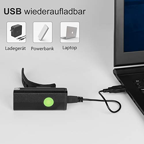 Ricaricabile tramite USB e ricarica intelligente: la luce per bicicletta dispone di un cavo USB in dotazione. È possibile utilizzare un PC, una power bank, un alimentatore e qualsiasi dispositivo dotato di porta USB per ricaricare la luce della bicicletta. I pulsanti di accensione e spegnimento delle luci anteriori possono anche indicare che la batteria è scarica (spia rossa) e durante la ricarica (spia verde).
