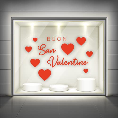 Open Island Vetrofania San Valentino- Kit Adesivi con scritta BUON SAN VALENTINO per decorare la vetrina del tuo negozio in occasione della festa degli innamorati