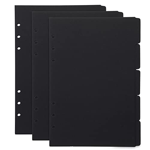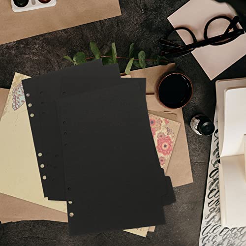 【15 fogli inclusi】 Divisori in carta kraft nera a 6 anelli per mantenere i raccoglitori ordinatamente organizzati e presentabili. 3 set di carta A5 (5 fogli/set), 15 fogli in totale.