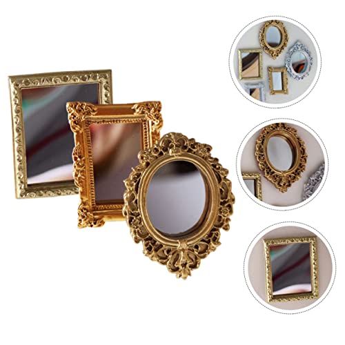 Operitacx 3 Pezzi Bambola D'oro Per Specchio Intagliato Parete Piccola Decorazione Vintage Gioielli In Miniatura Mini Goffrato Mini Mobili Puntelli Paesaggio Ornamenti Casa Micro Camera Da Letto Stili Casuali