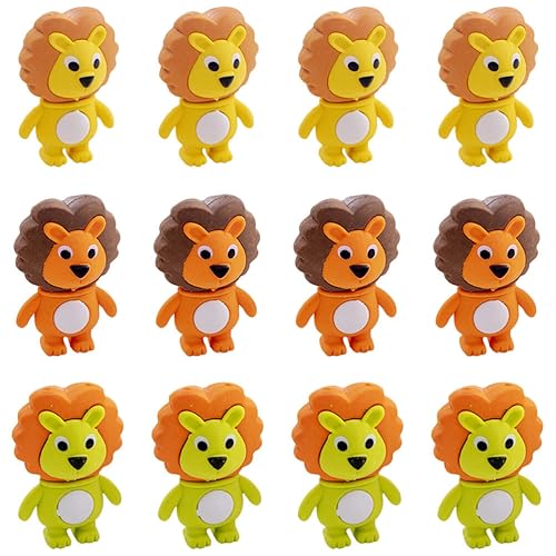 Operitacx 12 Pezzi Gomma Da Cancellare Piccolo Leone Gomme Da Cancellare Per Animali Per Bambini Minuscolo Giocattolo Gomma Smontare Le Gomme Miniatura 3d Animale Regalo Plastica Alunni