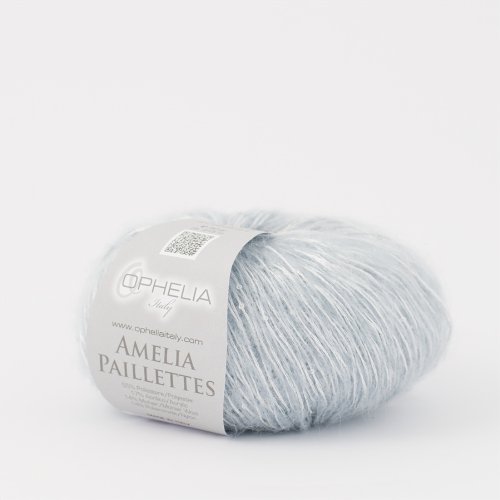 Ophelia Italy Amelia Paillettes - Gomitoli Lana Mohair 50g Filato con Paillettes 55% Poliestere 17% Acrilico 14% Mohair 14% Poliammide (007 Celeste)
