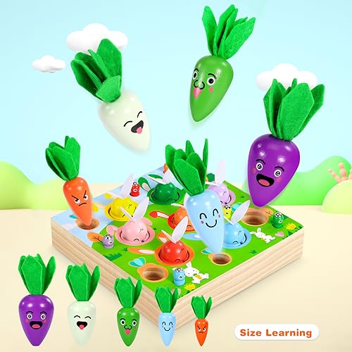 Ophy Giochi Bambini 2 Anni-7 Conigli per la Corrispondenza Dei Colori Giochi Montessori Magnetici di Pesca in Legno 5 carote pazze per imparare a selezionare le forme per Bambini Regalo per2 3 4 5Anni