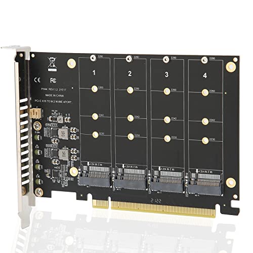 T opiky Scheda Adattatore M.2 NVME SSD a PCIe 4.0, Scheda di Espansione M.2 NVMe a PCIE X16 a 4 Porte per SSD M Key NVMe, 4 X 32 Gbps a Piena velocità(ph44)