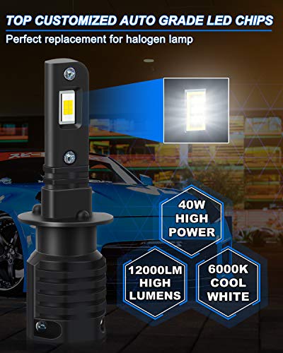 OPL5 H1 LED Lampadine Faro Mini Design Aggiornato Chip Fendinebbia 12000 Lumen 40W 6000K Xenon Bianco IP68 Impermeabile All-in-One Plug and Play LED Faro Kit di conversione (2PCS)......