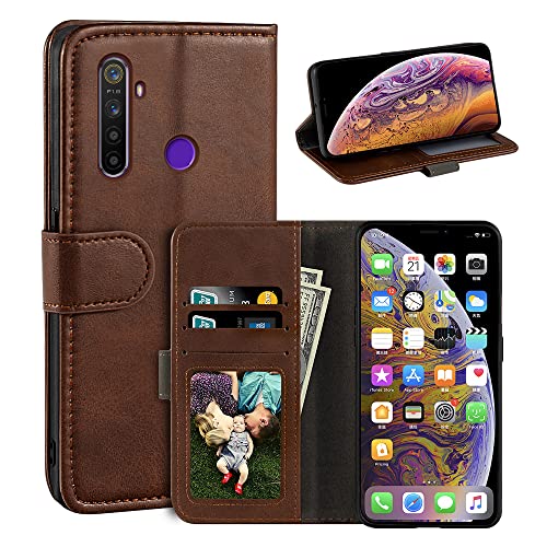 Oppo Realme 6i, custodia magnetica in pelle PU a portafoglio per telefono da lavoro, con scomparto per carte di credito e cavalletto per Oppo Realme Narzo 10, 16,5 cm, marrone scuro