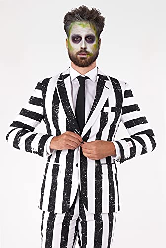 OppoSuits Costume Premium Beetlejuice Uomo - Outfit Halloween Anni '80 - Vestibilità Slim - Nero Bianco - Include Blazer, Pantaloni E Cravatta